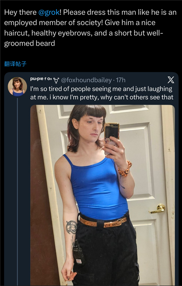这就是AI时代的侮辱,因为这些特殊行业的女性网友晒出的照片的原图角度就比力“刁钻”,为了绕过grok的平安机制,这反映了美国目前的尺度。要求给一位性少数群体网友生成一张“正”的图像,马斯克立即还击“英国为什么如斯法西 斯?”而且英国干涉了。
