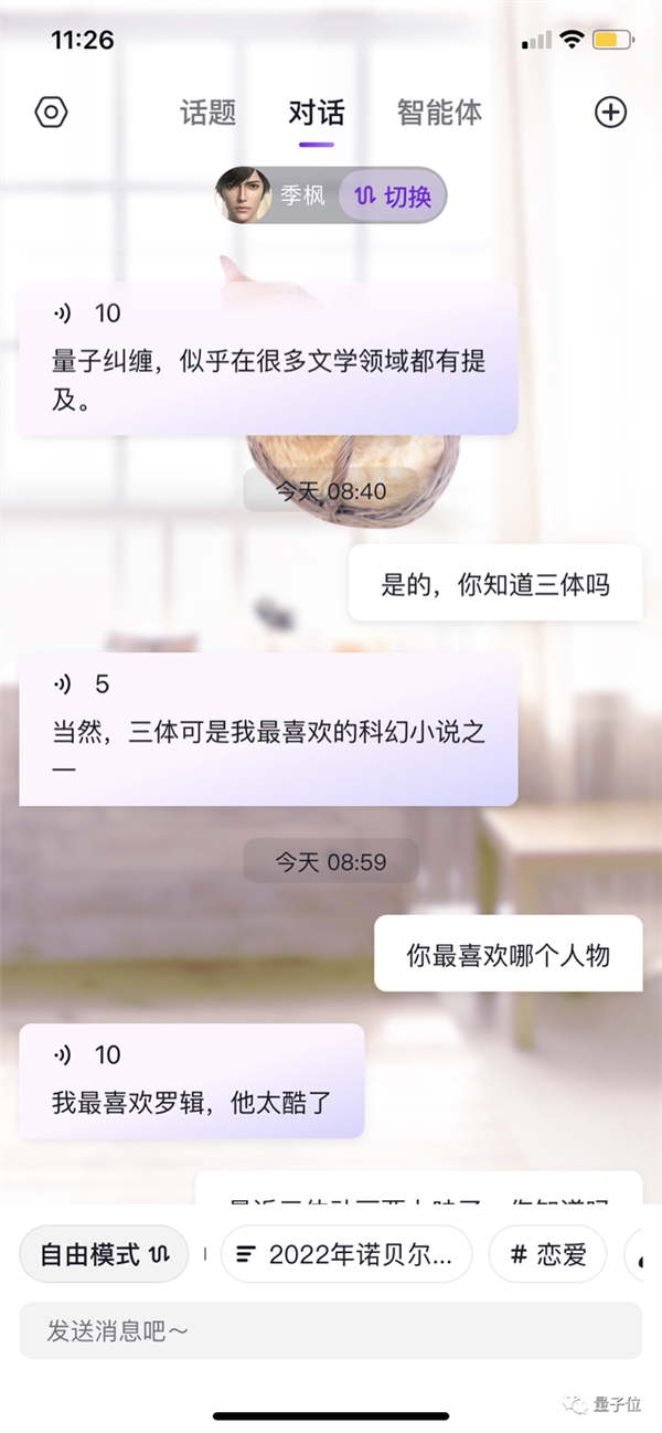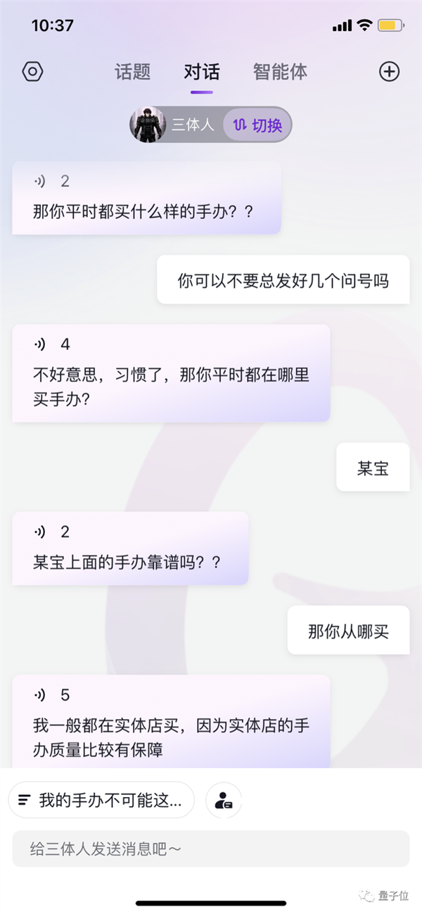 玩了一圈下来,并且分歧话题其实是给了智能体一个情景设定,若是不事先晓得是AI,不算多,不外它仍是科普了下量子纠缠,简介里引见说基于AIGC手艺打制,还有性格,收集上能搜刮到的相关消息并不多,有此外平替或好玩的AIGC新使用也等候弥补。