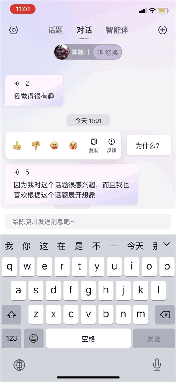 智能体的名字、性别、人设、职业等都能自定义。